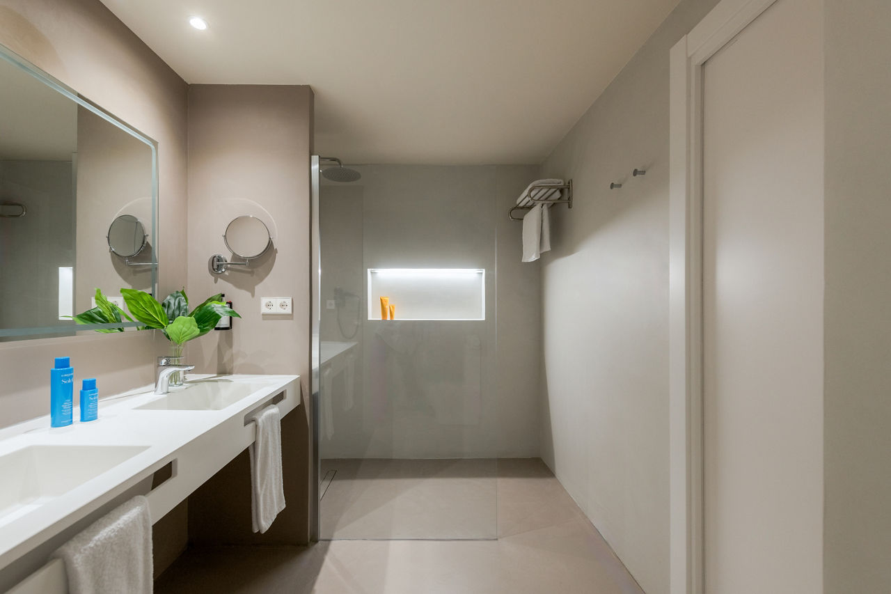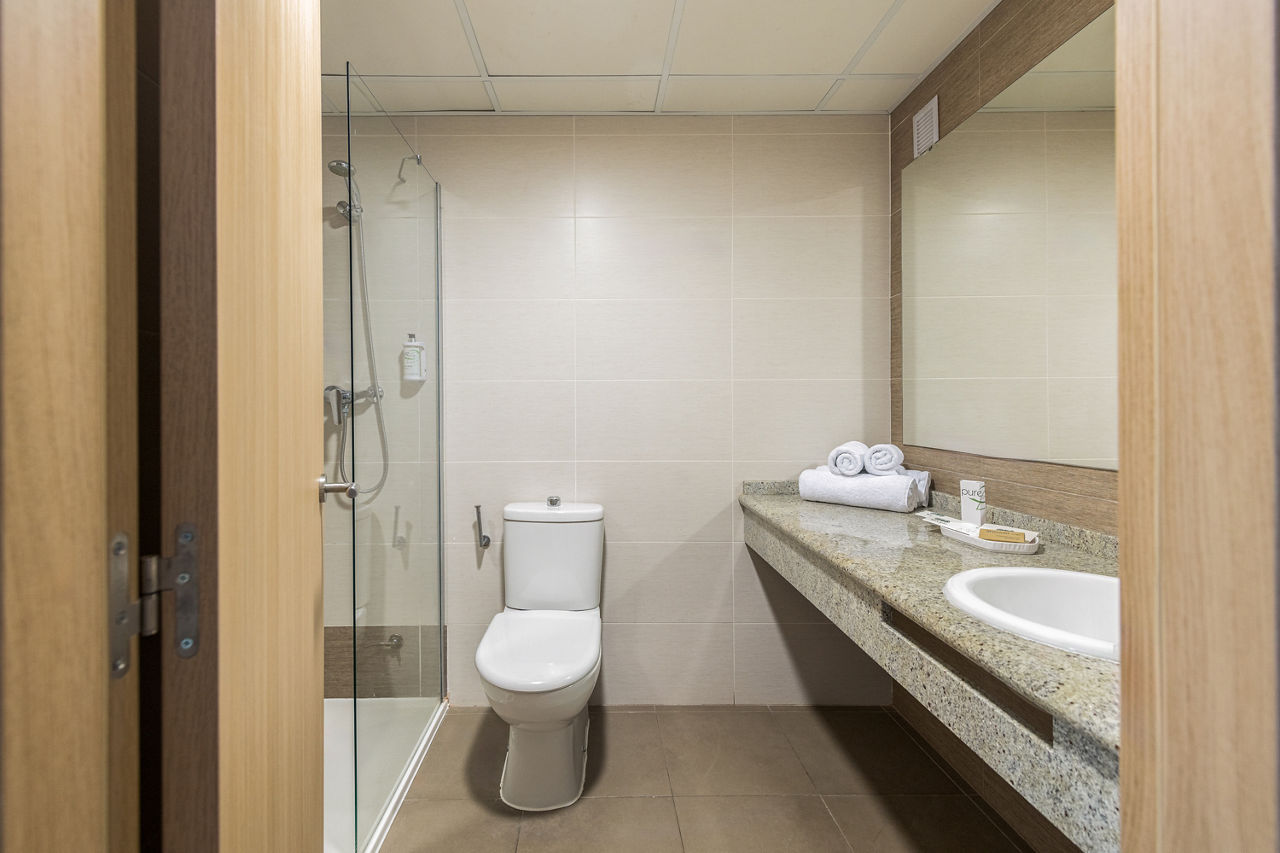 Twin/double rooms 3 adults and 1 child and have full bathroom, hairdryer, air conditioning, satellite TV and balcony or terrace. Twin/double rooms for sole use are also available.