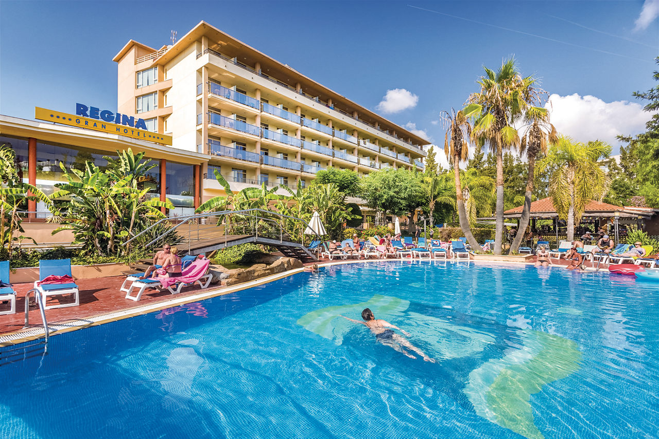 With an enviable location close to the resort centre, 4R Regina Gran is a great option for your visit to Salou. There?s a host of facilities including a spacious pool area, gym and relaxing spa. For the kids, the fun never ends; there?s a children?s club, games room, entertainment plus a compact pool, perfect for the water babies! Plus, with comfortable rooms, a friendly atmosphere and PortAventura World within walking distance, 4R Regina Gran is definitely hard to beat.Twin Double rooms sleep up to 2 adults and 2 children with full bathroom, hairdryer, satellite TV, air conditioning and balcony or terrace. Junior Suite, Suites and Twin Double Room for Sole Use and All Inclusive are also available.