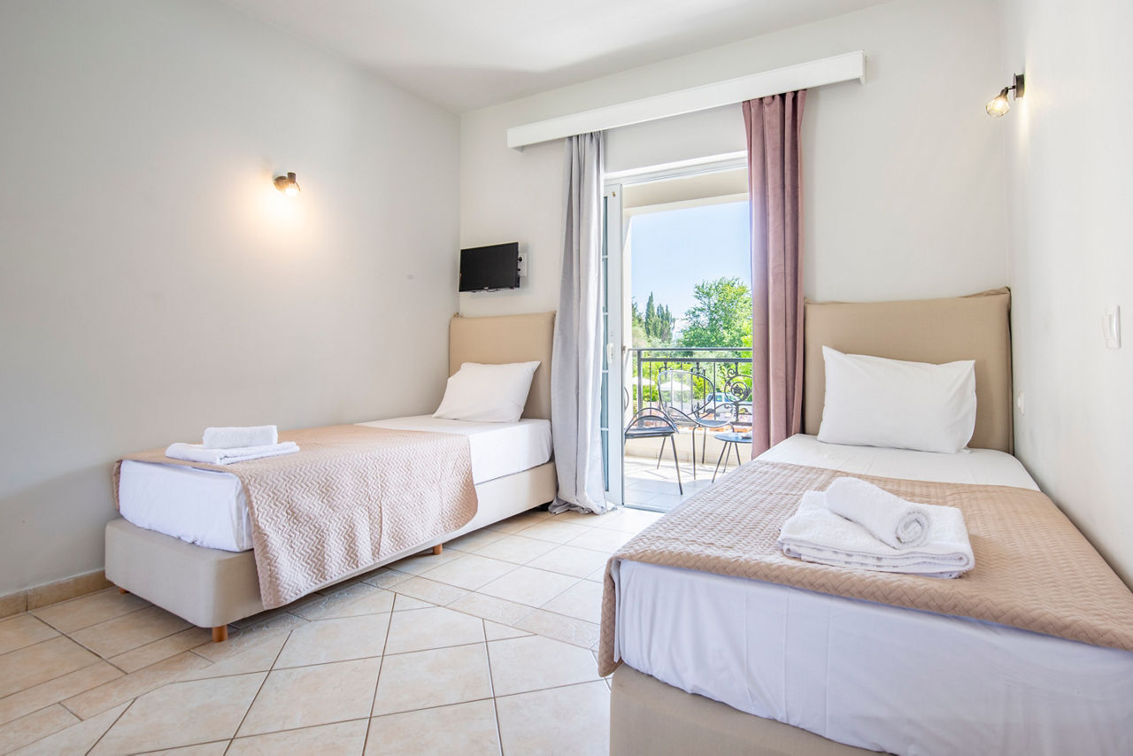The friendly, family-run San George Apartments is ideal for families and couples wanting a relaxing holiday in a great location. The bright and modern rooms allow for a comfortable week in the sun where you can kick back and relax. Why not treat yourself and upgrade to one of the swim up rooms? Location wise, it?s easy to explore the popular resort of Sidari, or soak up the rays on the nearby beach.Studios sleep up to 3 adults and have a bathroom with shower, air conditioning*, TV, fridge and balcony or terrace. One Bedroom apartments sleeping up to 4 adults, Two Bedroom apartments, Studios for sole use and One Bedroom apartments for sole use are also available.