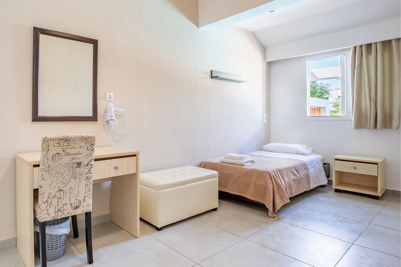 Studios sleep up to 3 adults and have a bathroom with shower, air conditioning*, TV, fridge and balcony or terrace. One Bedroom apartments sleeping up to 4 adults, Two Bedroom apartments, Studios for sole use and One Bedroom apartments for sole use are also available.